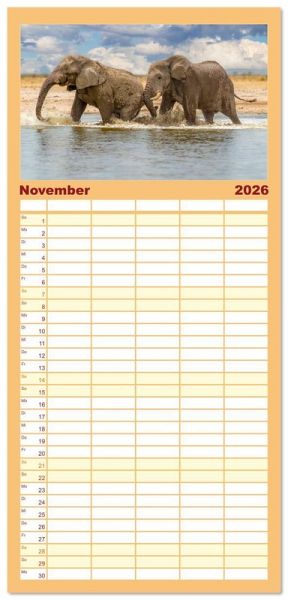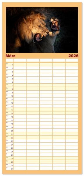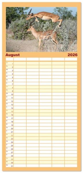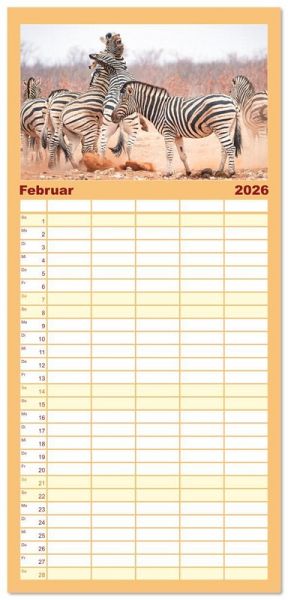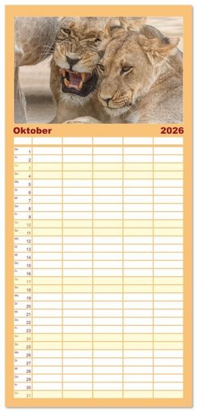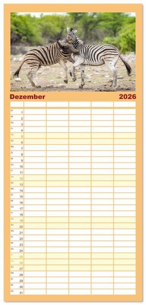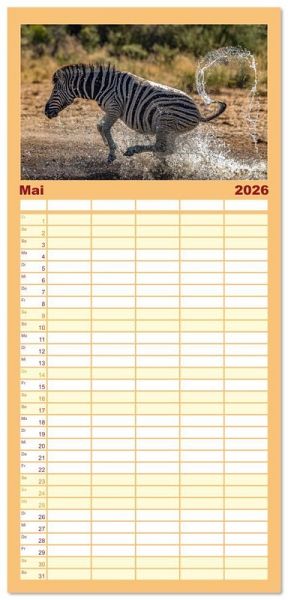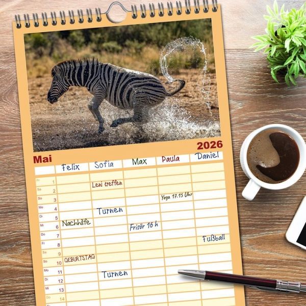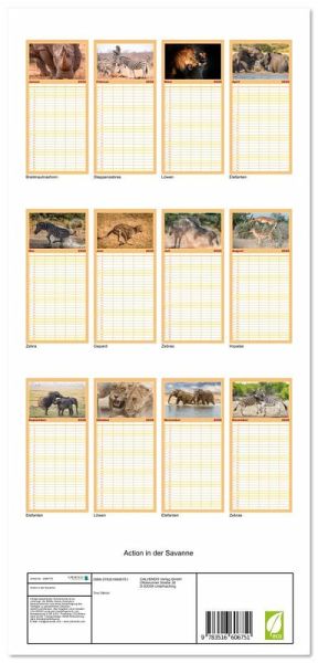 alender mit 5 Spalten für bis zu 5 Personen für mehr Struktur im Alltag - so bleiben alle Termine im Blick!ÜBERSICHTLICH - mit farblich getrennten Wochen- und Feiertagen. Die einzelnen Felder bieten genügend Platz für Eintragungen. So macht Organisieren Spaß!FANTASTISCHE BILDER - Dieser Planer ist nicht nur eine nützliche Hilfe im Alltag, sondern schmückt gleichzeitig Ihr Zuhause. Ideal auch als Geschenk.FÜR ALLE STIFTE GEEIGNET - ganz egal, ob Sie lieber mit Kugelschreiber oder Bleistift schreiben.NACHHALTIG - deutliche Abfallreduzierung durch bedarfsgerechte Einzelstückfertigung, umweltfreundliches FSC-zertifiziertes Papier, Produktion in Deutschland, klimabewusste Logistik.Afrikas Tiere in voller Aktion von Autor(in): Tina Olbrich