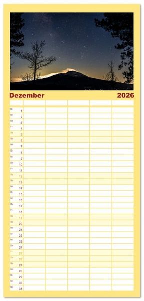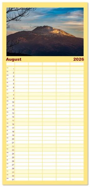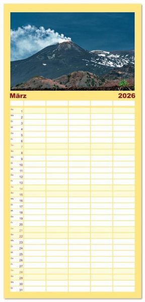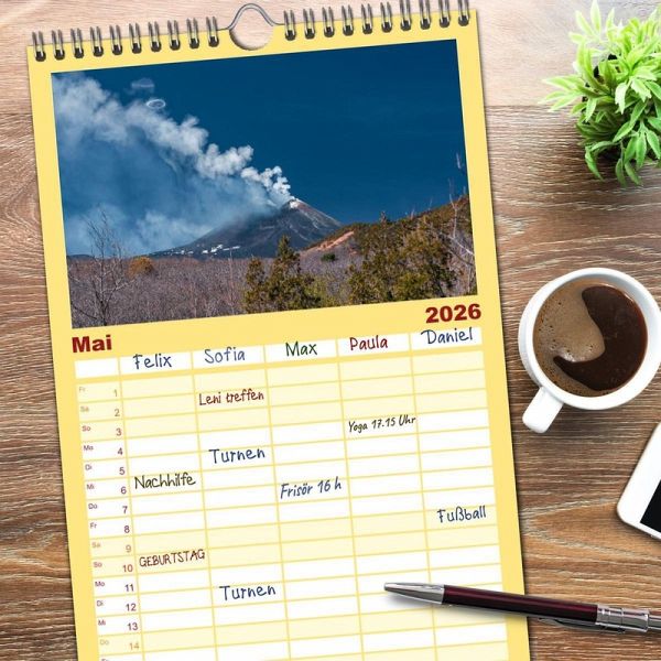 PRAKTISCH - übersichtlicher Familienkalender mit 5 Spalten für bis zu 5 Personen für mehr Struktur im Alltag - so bleiben alle Termine im Blick!ÜBERSICHTLICH - mit farblich getrennten Wochen- und Feiertagen. Die einzelnen Felder bieten genügend Platz für Eintragungen. So macht Organisieren Spaß!FANTASTISCHE BILDER - Dieser Planer ist nicht nur eine nützliche Hilfe im Alltag, sondern schmückt gleichzeitig Ihr Zuhause. Ideal auch als Geschenk.FÜR ALLE STIFTE GEEIGNET - ganz egal, ob Sie lieber mit Kugelschreiber oder Bleistift schreiben.NACHHALTIG - deutliche Abfallreduzierung durch bedarfsgerechte Einzelstückfertigung, umweltfreundliches FSC-zertifiziertes Papier, Produktion in Deutschland, klimabewusste Logistik.Wenn der Ätna uns etwas zu sagen hat. von Autor(in): Sonja Schlichter