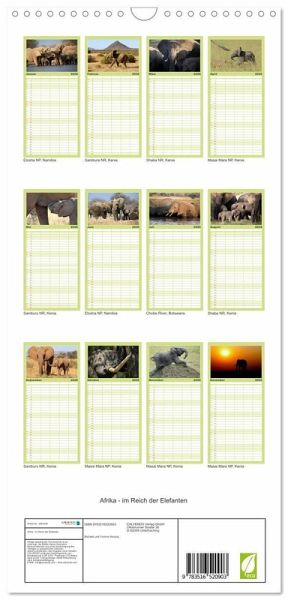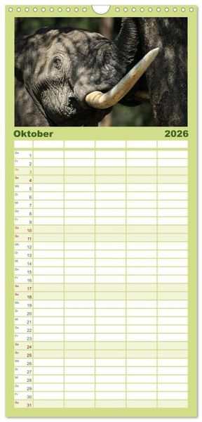 PRAKTISCH - übersichtlicher Familienkalender mit 5 Spalten für bis zu 5 Personen für mehr Struktur im Alltag - so bleiben alle Termine im Blick!ÜBERSICHTLICH - mit farblich getrennten Wochen- und Feiertagen. Die einzelnen Felder bieten genügend Platz für Eintragungen. So macht Organisieren Spaß!FANTASTISCHE BILDER - Dieser Planer ist nicht nur eine nützliche Hilfe im Alltag, sondern schmückt gleichzeitig Ihr Zuhause. Ideal auch als Geschenk.FÜR ALLE STIFTE GEEIGNET - ganz egal, ob Sie lieber mit Kugelschreiber oder Bleistift schreiben.NACHHALTIG - deutliche Abfallreduzierung durch bedarfsgerechte Einzelstückfertigung, umweltfreundliches FSC-zertifiziertes Papier, Produktion in Deutschland, klimabewusste Logistik.Elefanten - Giganten Afrikas von Autor(in): Michael Herzog