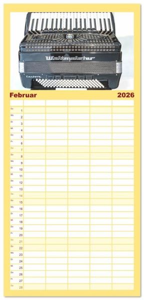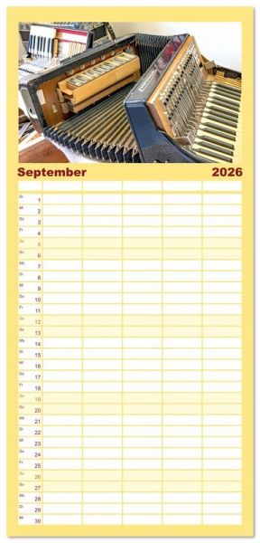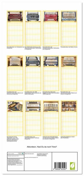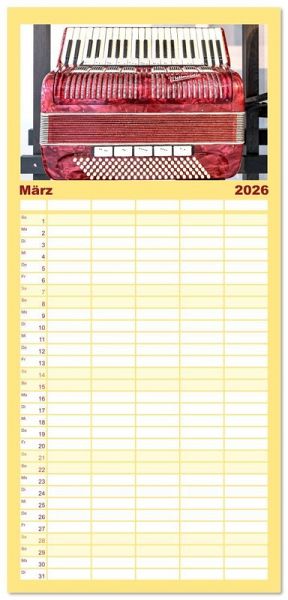 PRAKTISCH - übersichtlicher Familienkalender mit 5 Spalten für bis zu 5 Personen für mehr Struktur im Alltag - so bleiben alle Termine im Blick!ÜBERSICHTLICH - mit farblich getrennten Wochen- und Feiertagen. Die einzelnen Felder bieten genügend Platz für Eintragungen. So macht Organisieren Spaß!FANTASTISCHE BILDER - Dieser Planer ist nicht nur eine nützliche Hilfe im Alltag, sondern schmückt gleichzeitig Ihr Zuhause. Ideal auch als Geschenk.FÜR ALLE STIFTE GEEIGNET - ganz egal, ob Sie lieber mit Kugelschreiber oder Bleistift schreiben.NACHHALTIG - deutliche Abfallreduzierung durch bedarfsgerechte Einzelstückfertigung, umweltfreundliches FSC-zertifiziertes Papier, Produktion in Deutschland, klimabewusste Logistik.Eine Quetschkommode mausert sich zum Akkordeon von Autor(in): Bodo Schmidt