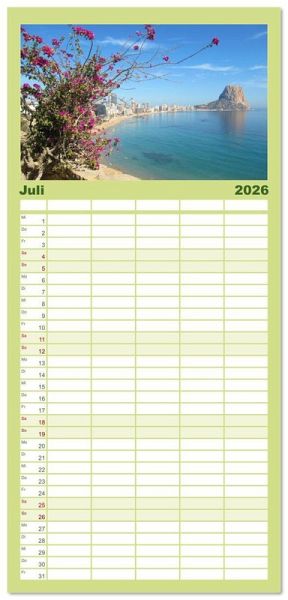 PRAKTISCH - übersichtlicher Familienkalender mit 5 Spalten für bis zu 5 Personen für mehr Struktur im Alltag - so bleiben alle Termine im Blick!ÜBERSICHTLICH - mit farblich getrennten Wochen- und Feiertagen. Die einzelnen Felder bieten genügend Platz für Eintragungen. So macht Organisieren Spaß!FANTASTISCHE BILDER - Dieser Planer ist nicht nur eine nützliche Hilfe im Alltag, sondern schmückt gleichzeitig Ihr Zuhause. Ideal auch als Geschenk.FÜR ALLE STIFTE GEEIGNET - ganz egal, ob Sie lieber mit Kugelschreiber oder Bleistift schreiben.NACHHALTIG - deutliche Abfallreduzierung durch bedarfsgerechte Einzelstückfertigung, umweltfreundliches FSC-zertifiziertes Papier, Produktion in Deutschland, klimabewusste Logistik.Die an der Costa Blanca gelegenen Städte in der Provinz Alicante begeistern durch ihre langen Strände und ein ganzjährig mildes Klima zum Entspannen und Erholen. von Autor(in): Martin Gillner