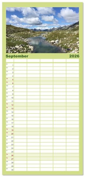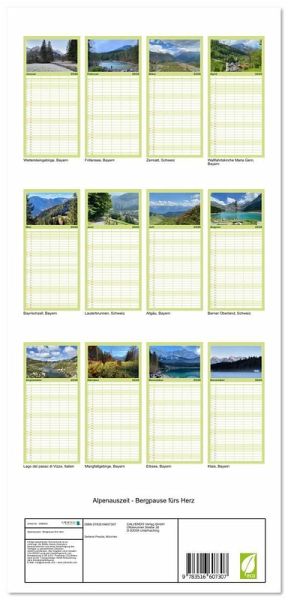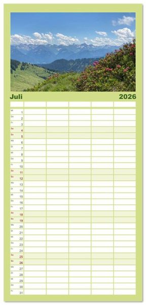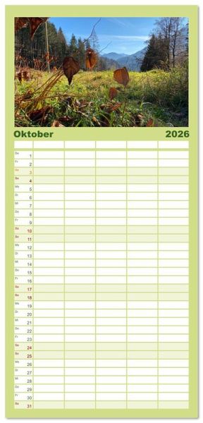 PRAKTISCH - übersichtlicher Familienkalender mit 5 Spalten für bis zu 5 Personen für mehr Struktur im Alltag - so bleiben alle Termine im Blick!ÜBERSICHTLICH - mit farblich getrennten Wochen- und Feiertagen. Die einzelnen Felder bieten genügend Platz für Eintragungen. So macht Organisieren Spaß!FANTASTISCHE BILDER - Dieser Planer ist nicht nur eine nützliche Hilfe im Alltag, sondern schmückt gleichzeitig Ihr Zuhause. Ideal auch als Geschenk.FÜR ALLE STIFTE GEEIGNET - ganz egal, ob Sie lieber mit Kugelschreiber oder Bleistift schreiben.NACHHALTIG - deutliche Abfallreduzierung durch bedarfsgerechte Einzelstückfertigung, umweltfreundliches FSC-zertifiziertes Papier, Produktion in Deutschland, klimabewusste Logistik.Bergmomente die unter die Haut gehen und für Entspannung und Inspiration zugleich sorgen von Autor(in): Stefanie Preuße