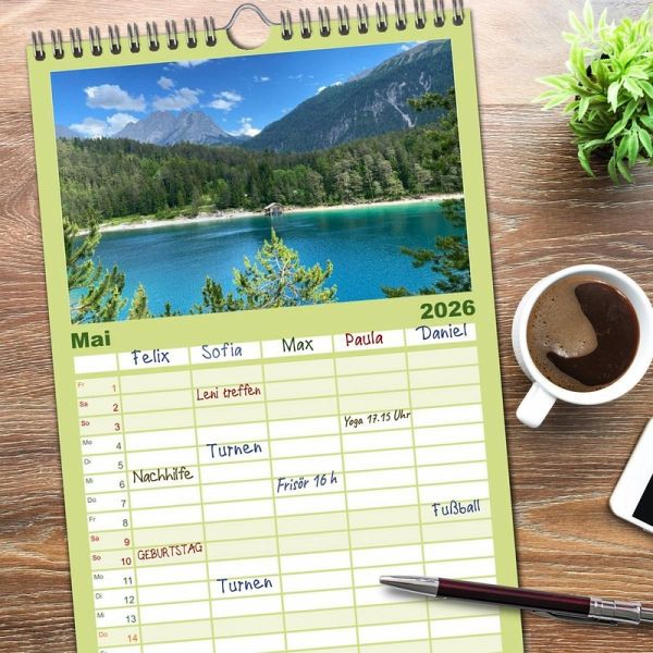 PRAKTISCH - übersichtlicher Familienkalender mit 5 Spalten für bis zu 5 Personen für mehr Struktur im Alltag - so bleiben alle Termine im Blick!ÜBERSICHTLICH - mit farblich getrennten Wochen- und Feiertagen. Die einzelnen Felder bieten genügend Platz für Eintragungen. So macht Organisieren Spaß!FANTASTISCHE BILDER - Dieser Planer ist nicht nur eine nützliche Hilfe im Alltag, sondern schmückt gleichzeitig Ihr Zuhause. Ideal auch als Geschenk.FÜR ALLE STIFTE GEEIGNET - ganz egal, ob Sie lieber mit Kugelschreiber oder Bleistift schreiben.NACHHALTIG - deutliche Abfallreduzierung durch bedarfsgerechte Einzelstückfertigung, umweltfreundliches FSC-zertifiziertes Papier, Produktion in Deutschland, klimabewusste Logistik.Perfekter Inspirationsgeber für die Suche nach Herzensorten von Autor(in): Stefanie Preuße