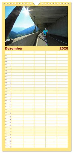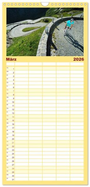 PRAKTISCH - übersichtlicher Familienkalender mit 5 Spalten für bis zu 5 Personen für mehr Struktur im Alltag - so bleiben alle Termine im Blick!ÜBERSICHTLICH - mit farblich getrennten Wochen- und Feiertagen. Die einzelnen Felder bieten genügend Platz für Eintragungen. So macht Organisieren Spaß!FANTASTISCHE BILDER - Dieser Planer ist nicht nur eine nützliche Hilfe im Alltag, sondern schmückt gleichzeitig Ihr Zuhause. Ideal auch als Geschenk.FÜR ALLE STIFTE GEEIGNET - ganz egal, ob Sie lieber mit Kugelschreiber oder Bleistift schreiben.NACHHALTIG - deutliche Abfallreduzierung durch bedarfsgerechte Einzelstückfertigung, umweltfreundliches FSC-zertifiziertes Papier, Produktion in Deutschland, klimabewusste Logistik.Ein Fotokalender mit 13 faszinierenden Radsportmotiven in den Alpen von Autor(in): Matthias Rotter