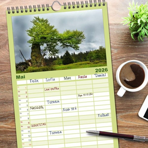 PRAKTISCH - übersichtlicher Familienkalender mit 5 Spalten für bis zu 5 Personen für mehr Struktur im Alltag - so bleiben alle Termine im Blick!ÜBERSICHTLICH - mit farblich getrennten Wochen- und Feiertagen. Die einzelnen Felder bieten genügend Platz für Eintragungen. So macht Organisieren Spaß!FANTASTISCHE BILDER - Dieser Planer ist nicht nur eine nützliche Hilfe im Alltag, sondern schmückt gleichzeitig Ihr Zuhause. Ideal auch als Geschenk.FÜR ALLE STIFTE GEEIGNET - ganz egal, ob Sie lieber mit Kugelschreiber oder Bleistift schreiben.NACHHALTIG - deutliche Abfallreduzierung durch bedarfsgerechte Einzelstückfertigung, umweltfreundliches FSC-zertifiziertes Papier, Produktion in Deutschland, klimabewusste Logistik.Unsere Beziehung zum Baum ist tief verwurzelt von Autor(in): Erika Müller
