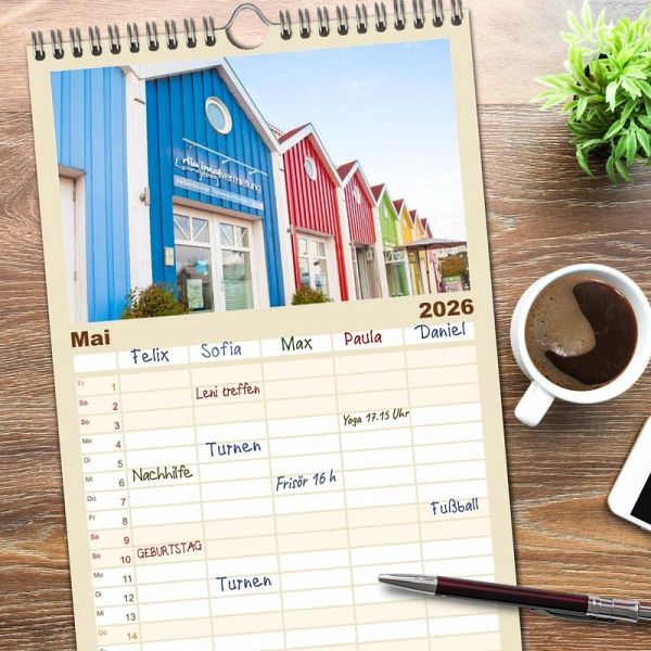 PRAKTISCH - übersichtlicher Familienkalender mit 5 Spalten für bis zu 5 Personen für mehr Struktur im Alltag - so bleiben alle Termine im Blick!ÜBERSICHTLICH - mit farblich getrennten Wochen- und Feiertagen. Die einzelnen Felder bieten genügend Platz für Eintragungen. So macht Organisieren Spaß!FANTASTISCHE BILDER - Dieser Planer ist nicht nur eine nützliche Hilfe im Alltag, sondern schmückt gleichzeitig Ihr Zuhause. Ideal auch als Geschenk.FÜR ALLE STIFTE GEEIGNET - ganz egal, ob Sie lieber mit Kugelschreiber oder Bleistift schreiben.NACHHALTIG - deutliche Abfallreduzierung durch bedarfsgerechte Einzelstückfertigung, umweltfreundliches FSC-zertifiziertes Papier, Produktion in Deutschland, klimabewusste Logistik.Brillante Fotografien der bunten Familieninsel von Autor(in): Dietmar Scherf