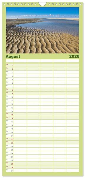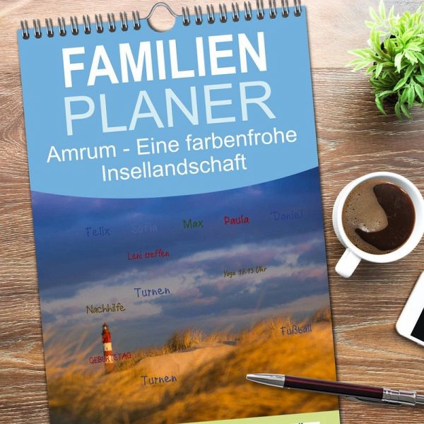 PRAKTISCH - übersichtlicher Familienkalender mit 5 Spalten für bis zu 5 Personen für mehr Struktur im Alltag - so bleiben alle Termine im Blick!ÜBERSICHTLICH - mit farblich getrennten Wochen- und Feiertagen. Die einzelnen Felder bieten genügend Platz für Eintragungen. So macht Organisieren Spaß!FANTASTISCHE BILDER - Dieser Planer ist nicht nur eine nützliche Hilfe im Alltag, sondern schmückt gleichzeitig Ihr Zuhause. Ideal auch als Geschenk.FÜR ALLE STIFTE GEEIGNET - ganz egal, ob Sie lieber mit Kugelschreiber oder Bleistift schreiben.NACHHALTIG - deutliche Abfallreduzierung durch bedarfsgerechte Einzelstückfertigung, umweltfreundliches FSC-zertifiziertes Papier, Produktion in Deutschland, klimabewusste Logistik.Stimmungsvolle farbenfrohe Landschaftsaufnahmen von Amrum von Autor(in): Silke Koch