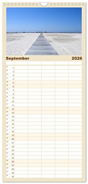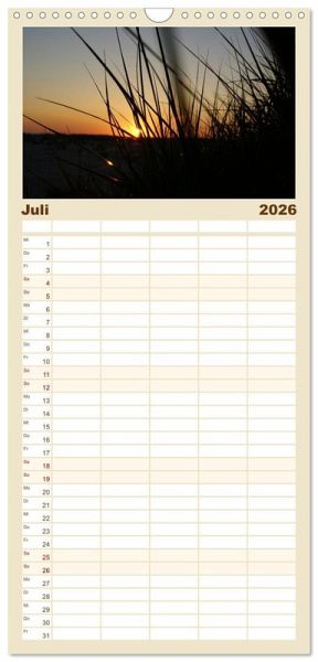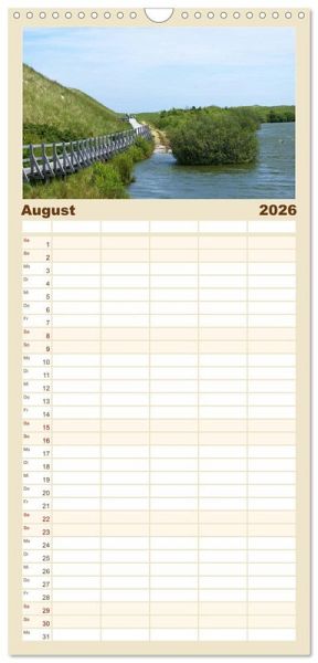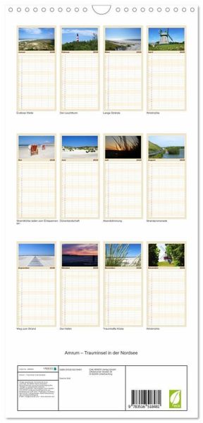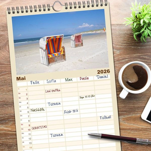 r Familienkalender mit 5 Spalten für bis zu 5 Personen für mehr Struktur im Alltag - so bleiben alle Termine im Blick!ÜBERSICHTLICH - mit farblich getrennten Wochen- und Feiertagen. Die einzelnen Felder bieten genügend Platz für Eintragungen. So macht Organisieren Spaß!FANTASTISCHE BILDER - Dieser Planer ist nicht nur eine nützliche Hilfe im Alltag, sondern schmückt gleichzeitig Ihr Zuhause. Ideal auch als Geschenk.FÜR ALLE STIFTE GEEIGNET - ganz egal, ob Sie lieber mit Kugelschreiber oder Bleistift schreiben.NACHHALTIG - deutliche Abfallreduzierung durch bedarfsgerechte Einzelstückfertigung, umweltfreundliches FSC-zertifiziertes Papier, Produktion in Deutschland, klimabewusste Logistik.Erleben Sie die Trauminsel Amrum mit einem der breitesten Strände Europas von Autor(in): Sascha Stoll