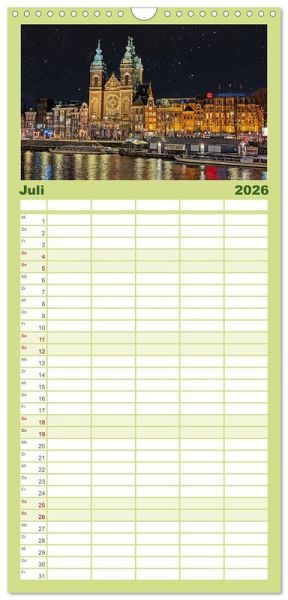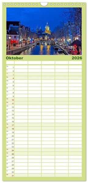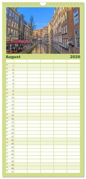 PRAKTISCH - übersichtlicher Familienkalender mit 5 Spalten für bis zu 5 Personen für mehr Struktur im Alltag - so bleiben alle Termine im Blick!ÜBERSICHTLICH - mit farblich getrennten Wochen- und Feiertagen. Die einzelnen Felder bieten genügend Platz für Eintragungen. So macht Organisieren Spaß!FANTASTISCHE BILDER - Dieser Planer ist nicht nur eine nützliche Hilfe im Alltag, sondern schmückt gleichzeitig Ihr Zuhause. Ideal auch als Geschenk.FÜR ALLE STIFTE GEEIGNET - ganz egal, ob Sie lieber mit Kugelschreiber oder Bleistift schreiben.NACHHALTIG - deutliche Abfallreduzierung durch bedarfsgerechte Einzelstückfertigung, umweltfreundliches FSC-zertifiziertes Papier, Produktion in Deutschland, klimabewusste Logistik.Lassen Sie sich von der Schönheit Amsterdams das ganze Jahr über inspirieren. von Autor(in): Denise Graupner