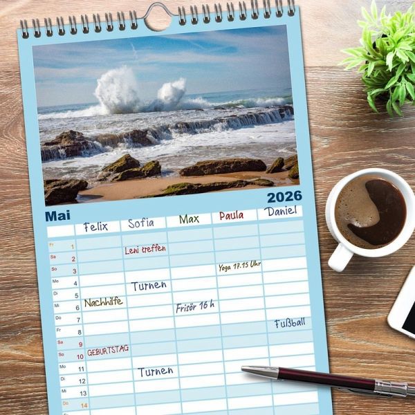PRAKTISCH - übersichtlicher Familienkalender mit 5 Spalten für bis zu 5 Personen für mehr Struktur im Alltag - so bleiben alle Termine im Blick!ÜBERSICHTLICH - mit farblich getrennten Wochen- und Feiertagen. Die einzelnen Felder bieten genügend Platz für Eintragungen. So macht Organisieren Spaß!FANTASTISCHE BILDER - Dieser Planer ist nicht nur eine nützliche Hilfe im Alltag, sondern schmückt gleichzeitig Ihr Zuhause. Ideal auch als Geschenk.FÜR ALLE STIFTE GEEIGNET - ganz egal, ob Sie lieber mit Kugelschreiber oder Bleistift schreiben.NACHHALTIG - deutliche Abfallreduzierung durch bedarfsgerechte Einzelstückfertigung, umweltfreundliches FSC-zertifiziertes Papier, Produktion in Deutschland, klimabewusste Logistik.Atlantischer Küstenzauber durch alle Jahreszeiten von Autor(in): Doris Müller