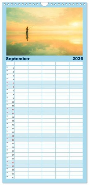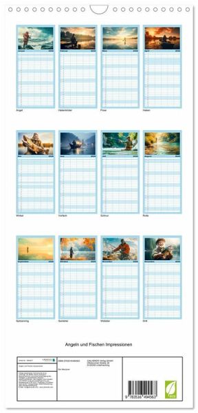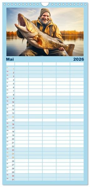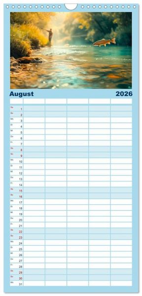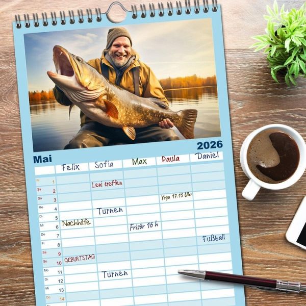 PRAKTISCH - übersichtlicher Familienkalender mit 5 Spalten für bis zu 5 Personen für mehr Struktur im Alltag - so bleiben alle Termine im Blick!ÜBERSICHTLICH - mit farblich getrennten Wochen- und Feiertagen. Die einzelnen Felder bieten genügend Platz für Eintragungen. So macht Organisieren Spaß!FANTASTISCHE BILDER - Dieser Planer ist nicht nur eine nützliche Hilfe im Alltag, sondern schmückt gleichzeitig Ihr Zuhause. Ideal auch als Geschenk.FÜR ALLE STIFTE GEEIGNET - ganz egal, ob Sie lieber mit Kugelschreiber oder Bleistift schreiben.NACHHALTIG - deutliche Abfallreduzierung durch bedarfsgerechte Einzelstückfertigung, umweltfreundliches FSC-zertifiziertes Papier, Produktion in Deutschland, klimabewusste Logistik.Erleben Sie Monat für Monat die Faszination des Angelsports und lassen sich von den einmaligen Bildern verzaubern. von Autor(in): Dirk Meutzner