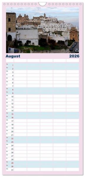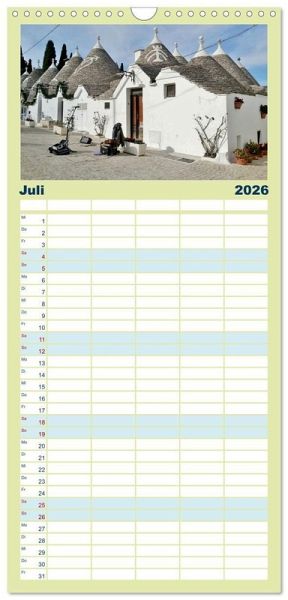 PRAKTISCH - übersichtlicher Familienkalender mit 5 Spalten für bis zu 5 Personen für mehr Struktur im Alltag - so bleiben alle Termine im Blick!ÜBERSICHTLICH - mit farblich getrennten Wochen- und Feiertagen. Die einzelnen Felder bieten genügend Platz für Eintragungen. So macht Organisieren Spaß!FANTASTISCHE BILDER - Dieser Planer ist nicht nur eine nützliche Hilfe im Alltag, sondern schmückt gleichzeitig Ihr Zuhause. Ideal auch als Geschenk.FÜR ALLE STIFTE GEEIGNET - ganz egal, ob Sie lieber mit Kugelschreiber oder Bleistift schreiben.NACHHALTIG - deutliche Abfallreduzierung durch bedarfsgerechte Einzelstückfertigung, umweltfreundliches FSC-zertifiziertes Papier, Produktion in Deutschland, klimabewusste Logistik.Eine Reise durch Apulien mit seinen verschiedenen Eindrücke. von Autor(in): Ramona Benahmed