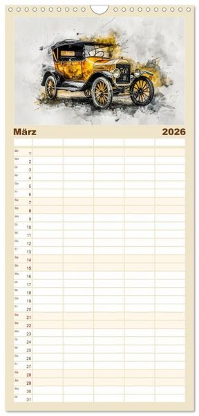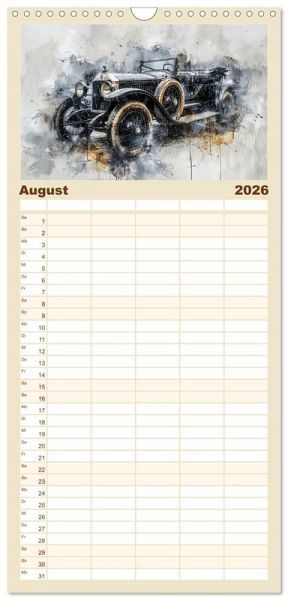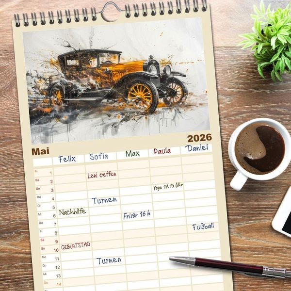 PRAKTISCH - übersichtlicher Familienkalender mit 5 Spalten für bis zu 5 Personen für mehr Struktur im Alltag - so bleiben alle Termine im Blick!ÜBERSICHTLICH - mit farblich getrennten Wochen- und Feiertagen. Die einzelnen Felder bieten genügend Platz für Eintragungen. So macht Organisieren Spaß!FANTASTISCHE BILDER - Dieser Planer ist nicht nur eine nützliche Hilfe im Alltag, sondern schmückt gleichzeitig Ihr Zuhause. Ideal auch als Geschenk.FÜR ALLE STIFTE GEEIGNET - ganz egal, ob Sie lieber mit Kugelschreiber oder Bleistift schreiben.NACHHALTIG - deutliche Abfallreduzierung durch bedarfsgerechte Einzelstückfertigung, umweltfreundliches FSC-zertifiziertes Papier, Produktion in Deutschland, klimabewusste Logistik.Diese historischen Fahrzeuge fangen den Charme und die Raffinesse einer längst vergangenen Zeit ein, als das Reisen noch eine Kunstform war und Automobilgeschichte geschrieben wurde. von Autor(in): Steffen Gierok ; Magik Artist Design
