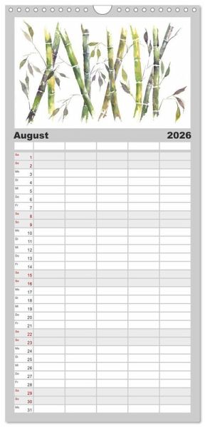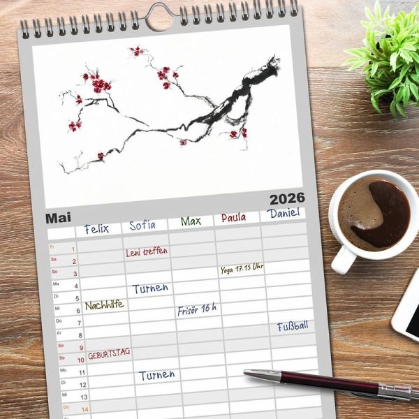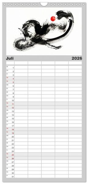 PRAKTISCH - übersichtlicher Familienkalender mit 5 Spalten für bis zu 5 Personen für mehr Struktur im Alltag - so bleiben alle Termine im Blick!ÜBERSICHTLICH - mit farblich getrennten Wochen- und Feiertagen. Die einzelnen Felder bieten genügend Platz für Eintragungen. So macht Organisieren Spaß!FANTASTISCHE BILDER - Dieser Planer ist nicht nur eine nützliche Hilfe im Alltag, sondern schmückt gleichzeitig Ihr Zuhause. Ideal auch als Geschenk.FÜR ALLE STIFTE GEEIGNET - ganz egal, ob Sie lieber mit Kugelschreiber oder Bleistift schreiben.NACHHALTIG - deutliche Abfallreduzierung durch bedarfsgerechte Einzelstückfertigung, umweltfreundliches FSC-zertifiziertes Papier, Produktion in Deutschland, klimabewusste Logistik.Handgemalte Tuschbilder in asiatischer Tradition von Autor(in): Jitka Krause