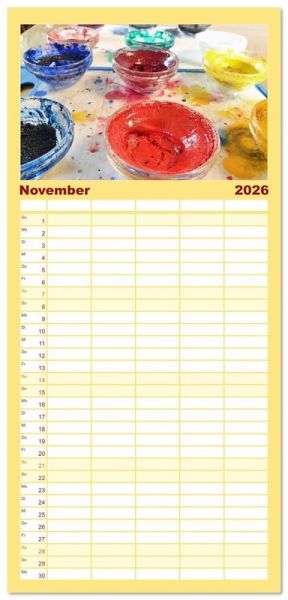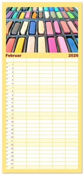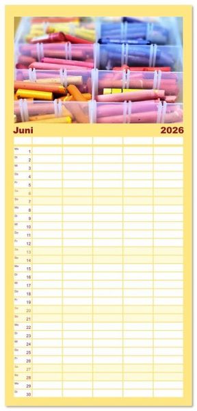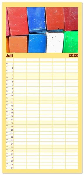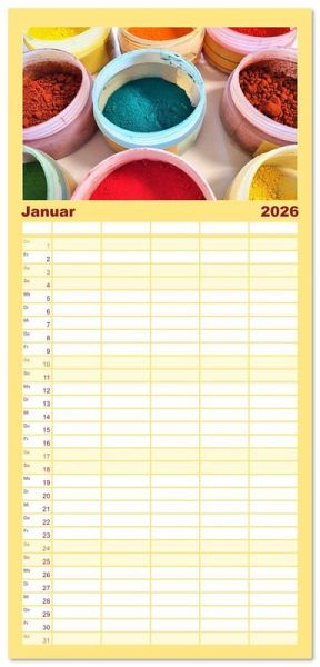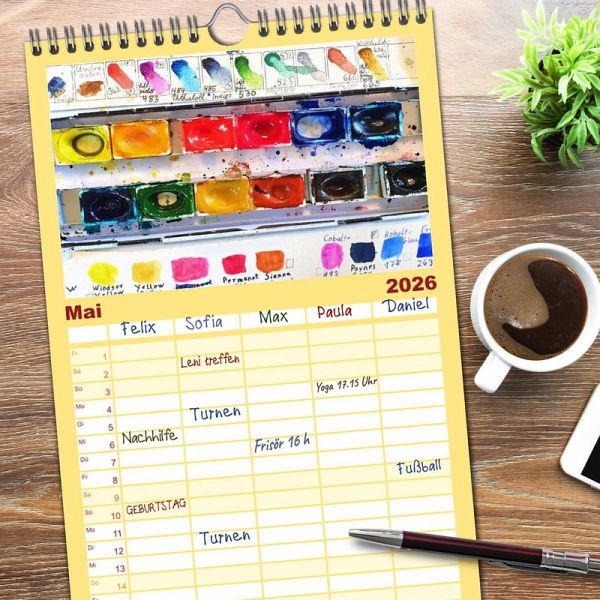PRAKTISCH - übersichtlicher Familienkalender mit 5 Spalten für bis zu 5 Personen für mehr Struktur im Alltag - so bleiben alle Termine im Blick!ÜBERSICHTLICH - mit farblich getrennten Wochen- und Feiertagen. Die einzelnen Felder bieten genügend Platz für Eintragungen. So macht Organisieren Spaß!FANTASTISCHE BILDER - Dieser Planer ist nicht nur eine nützliche Hilfe im Alltag, sondern schmückt gleichzeitig Ihr Zuhause. Ideal auch als Geschenk.FÜR ALLE STIFTE GEEIGNET - ganz egal, ob Sie lieber mit Kugelschreiber oder Bleistift schreiben.NACHHALTIG - deutliche Abfallreduzierung durch bedarfsgerechte Einzelstückfertigung, umweltfreundliches FSC-zertifiziertes Papier, Produktion in Deutschland, klimabewusste Logistik.Farbenfrohes Kunstmaterial in Szene gesetzt. von Autor(in): Michaela Spreider