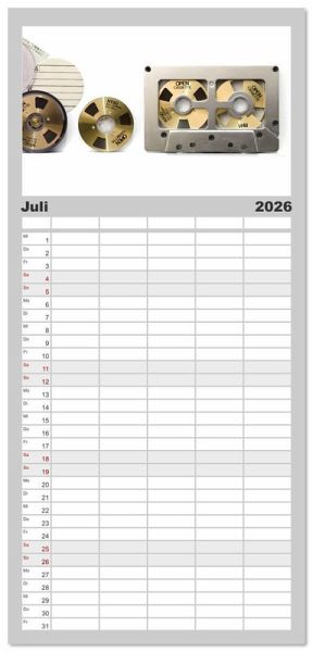 PRAKTISCH - übersichtlicher Familienkalender mit 5 Spalten für bis zu 5 Personen für mehr Struktur im Alltag - so bleiben alle Termine im Blick!ÜBERSICHTLICH - mit farblich getrennten Wochen- und Feiertagen. Die einzelnen Felder bieten genügend Platz für Eintragungen. So macht Organisieren Spaß!FANTASTISCHE BILDER - Dieser Planer ist nicht nur eine nützliche Hilfe im Alltag, sondern schmückt gleichzeitig Ihr Zuhause. Ideal auch als Geschenk.FÜR ALLE STIFTE GEEIGNET - ganz egal, ob Sie lieber mit Kugelschreiber oder Bleistift schreiben.NACHHALTIG - deutliche Abfallreduzierung durch bedarfsgerechte Einzelstückfertigung, umweltfreundliches FSC-zertifiziertes Papier, Produktion in Deutschland, klimabewusste Logistik.Audio Kompakt-Kassetten Nostalgie von Autor(in): Oliver Gelbrich