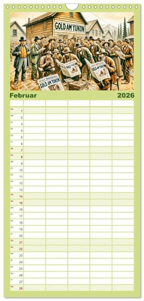PRAKTISCH - übersichtlicher Familienkalender mit 5 Spalten für bis zu 5 Personen für mehr Struktur im Alltag - so bleiben alle Termine im Blick!ÜBERSICHTLICH - mit farblich getrennten Wochen- und Feiertagen. Die einzelnen Felder bieten genügend Platz für Eintragungen. So macht Organisieren Spaß!FANTASTISCHE BILDER - Dieser Planer ist nicht nur eine nützliche Hilfe im Alltag, sondern schmückt gleichzeitig Ihr Zuhause. Ideal auch als Geschenk.FÜR ALLE STIFTE GEEIGNET - ganz egal, ob Sie lieber mit Kugelschreiber oder Bleistift schreiben.NACHHALTIG - deutliche Abfallreduzierung durch bedarfsgerechte Einzelstückfertigung, umweltfreundliches FSC-zertifiziertes Papier, Produktion in Deutschland, klimabewusste Logistik.Eine Reise zu den Schätzen des Yukon und den Spuren des Goldes von Autor(in): Anja Frost