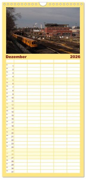 PRAKTISCH - übersichtlicher Familienkalender mit 5 Spalten für bis zu 5 Personen für mehr Struktur im Alltag - so bleiben alle Termine im Blick!ÜBERSICHTLICH - mit farblich getrennten Wochen- und Feiertagen. Die einzelnen Felder bieten genügend Platz für Eintragungen. So macht Organisieren Spaß!FANTASTISCHE BILDER - Dieser Planer ist nicht nur eine nützliche Hilfe im Alltag, sondern schmückt gleichzeitig Ihr Zuhause. Ideal auch als Geschenk.FÜR ALLE STIFTE GEEIGNET - ganz egal, ob Sie lieber mit Kugelschreiber oder Bleistift schreiben.NACHHALTIG - deutliche Abfallreduzierung durch bedarfsgerechte Einzelstückfertigung, umweltfreundliches FSC-zertifiziertes Papier, Produktion in Deutschland, klimabewusste Logistik.Eisenbahn, Straßenbahn, U-Bahn und S-Bahn in Berlin von Autor(in): Jan van Dyk