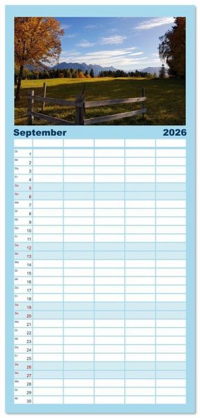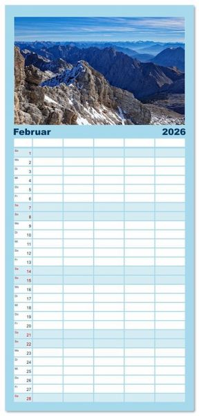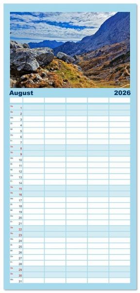 bersichtlicher Familienkalender mit 5 Spalten für bis zu 5 Personen für mehr Struktur im Alltag - so bleiben alle Termine im Blick!ÜBERSICHTLICH - mit farblich getrennten Wochen- und Feiertagen. Die einzelnen Felder bieten genügend Platz für Eintragungen. So macht Organisieren Spaß!FANTASTISCHE BILDER - Dieser Planer ist nicht nur eine nützliche Hilfe im Alltag, sondern schmückt gleichzeitig Ihr Zuhause. Ideal auch als Geschenk.FÜR ALLE STIFTE GEEIGNET - ganz egal, ob Sie lieber mit Kugelschreiber oder Bleistift schreiben.NACHHALTIG - deutliche Abfallreduzierung durch bedarfsgerechte Einzelstückfertigung, umweltfreundliches FSC-zertifiziertes Papier, Produktion in Deutschland, klimabewusste Logistik.Eine alpine Bilderreise von Autor(in): Inis Journeys