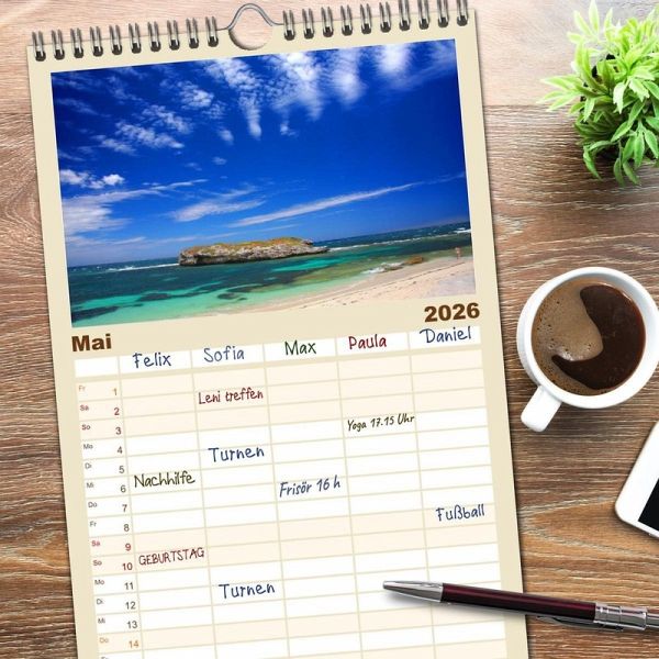 ersichtlicher Familienkalender mit 5 Spalten für bis zu 5 Personen für mehr Struktur im Alltag - so bleiben alle Termine im Blick!ÜBERSICHTLICH - mit farblich getrennten Wochen- und Feiertagen. Die einzelnen Felder bieten genügend Platz für Eintragungen. So macht Organisieren Spaß!FANTASTISCHE BILDER - Dieser Planer ist nicht nur eine nützliche Hilfe im Alltag, sondern schmückt gleichzeitig Ihr Zuhause. Ideal auch als Geschenk.FÜR ALLE STIFTE GEEIGNET - ganz egal, ob Sie lieber mit Kugelschreiber oder Bleistift schreiben.NACHHALTIG - deutliche Abfallreduzierung durch bedarfsgerechte Einzelstückfertigung, umweltfreundliches FSC-zertifiziertes Papier, Produktion in Deutschland, klimabewusste Logistik.Australiens Schönheit zwischen Strand und Buschland von Autor(in): Elisabeth Stanzer