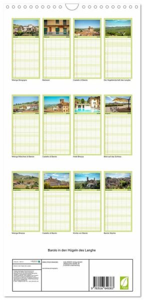 PRAKTISCH - übersichtlicher Familienkalender mit 5 Spalten für bis zu 5 Personen für mehr Struktur im Alltag - so bleiben alle Termine im Blick!ÜBERSICHTLICH - mit farblich getrennten Wochen- und Feiertagen. Die einzelnen Felder bieten genügend Platz für Eintragungen. So macht Organisieren Spaß!FANTASTISCHE BILDER - Dieser Planer ist nicht nur eine nützliche Hilfe im Alltag, sondern schmückt gleichzeitig Ihr Zuhause. Ideal auch als Geschenk.FÜR ALLE STIFTE GEEIGNET - ganz egal, ob Sie lieber mit Kugelschreiber oder Bleistift schreiben.NACHHALTIG - deutliche Abfallreduzierung durch bedarfsgerechte Einzelstückfertigung, umweltfreundliches FSC-zertifiziertes Papier, Produktion in Deutschland, klimabewusste Logistik.Das malerische Weindorf im Piemont von Autor(in): saschahaas photography