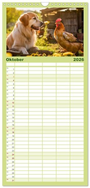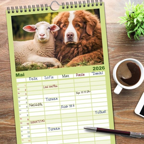 PRAKTISCH - übersichtlicher Familienkalender mit 5 Spalten für bis zu 5 Personen für mehr Struktur im Alltag - so bleiben alle Termine im Blick!ÜBERSICHTLICH - mit farblich getrennten Wochen- und Feiertagen. Die einzelnen Felder bieten genügend Platz für Eintragungen. So macht Organisieren Spaß!FANTASTISCHE BILDER - Dieser Planer ist nicht nur eine nützliche Hilfe im Alltag, sondern schmückt gleichzeitig Ihr Zuhause. Ideal auch als Geschenk.FÜR ALLE STIFTE GEEIGNET - ganz egal, ob Sie lieber mit Kugelschreiber oder Bleistift schreiben.NACHHALTIG - deutliche Abfallreduzierung durch bedarfsgerechte Einzelstückfertigung, umweltfreundliches FSC-zertifiziertes Papier, Produktion in Deutschland, klimabewusste Logistik.Ein abwechslungsreichess Hundeleben auf dem Bauernhof von Autor(in): Anja Frost