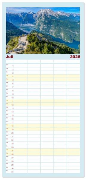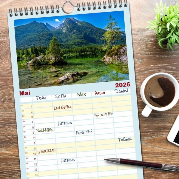 PRAKTISCH - übersichtlicher Familienkalender mit 5 Spalten für bis zu 5 Personen für mehr Struktur im Alltag - so bleiben alle Termine im Blick!ÜBERSICHTLICH - mit farblich getrennten Wochen- und Feiertagen. Die einzelnen Felder bieten genügend Platz für Eintragungen. So macht Organisieren Spaß!FANTASTISCHE BILDER - Dieser Planer ist nicht nur eine nützliche Hilfe im Alltag, sondern schmückt gleichzeitig Ihr Zuhause. Ideal auch als Geschenk.FÜR ALLE STIFTE GEEIGNET - ganz egal, ob Sie lieber mit Kugelschreiber oder Bleistift schreiben.NACHHALTIG - deutliche Abfallreduzierung durch bedarfsgerechte Einzelstückfertigung, umweltfreundliches FSC-zertifiziertes Papier, Produktion in Deutschland, klimabewusste Logistik.Bayerns Traumkulisse aus Bergen, Tälern und Seen empfängt seine Besucher mit majestätischen Landschaften, beeindruckenden Sehenswürdigkeiten und bayerischer Gastlichkeit. von Autor(in): Dieter Wilczek