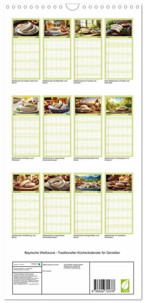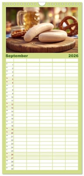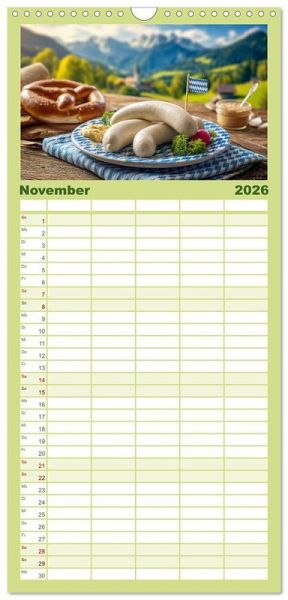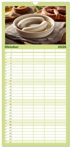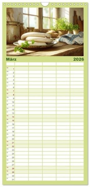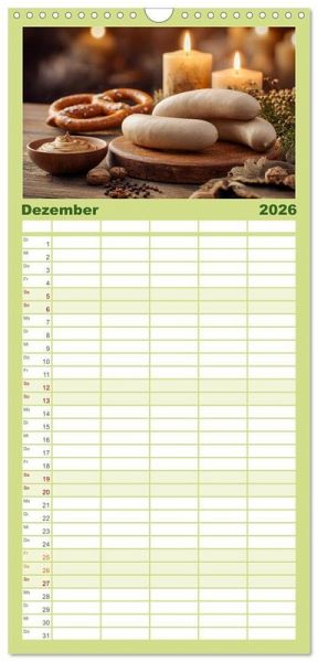 PRAKTISCH - übersichtlicher Familienkalender mit 5 Spalten für bis zu 5 Personen für mehr Struktur im Alltag - so bleiben alle Termine im Blick!ÜBERSICHTLICH - mit farblich getrennten Wochen- und Feiertagen. Die einzelnen Felder bieten genügend Platz für Eintragungen. So macht Organisieren Spaß!FANTASTISCHE BILDER - Dieser Planerist nicht nur eine nützliche Hilfe im Alltag, sondern schmückt gleichzeitig Ihr Zuhause. Ideal auch als Geschenk.FÜR ALLE STIFTE GEEIGNET - ganz egal, ob Sie lieber mit Kugelschreiber oder Bleistift schreiben.NACHHALTIG - deutliche Abfallreduzierung durch bedarfsgerechte Einzelstückfertigung, umweltfreundliches FSC-zertifiziertes Papier, Produktion in Deutschland, klimabewusste Logistik.Saftige Weißwürste, süßer Senf und frische Brezn. Bayrische Spezialität als Wurstkalender für Fleischliebhaber, Bayern Fans und Genießer. Perfekter Küchenkalender und Geschenk für alle, die Weißwurst lieben. von Autor(in): Michael Bihlmayer