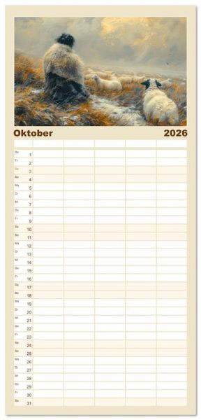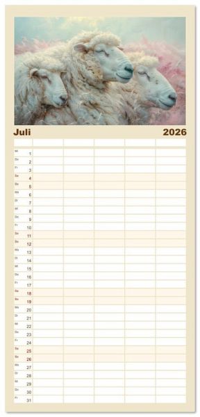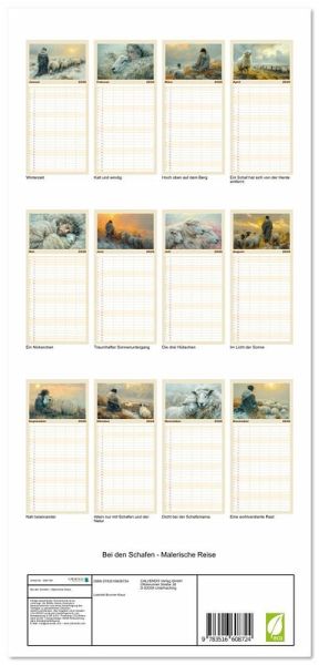 PRAKTISCH - übersichtlicher Familienkalender mit 5 Spalten für bis zu 5 Personen für mehr Struktur im Alltag - so bleiben alle Termine im Blick!ÜBERSICHTLICH - mit farblich getrennten Wochen- und Feiertagen. Die einzelnen Felder bieten genügend Platz für Eintragungen. So macht Organisieren Spaß!FANTASTISCHE BILDER - Dieser Planer ist nicht nur eine nützliche Hilfe im Alltag, sondern schmückt gleichzeitig Ihr Zuhause. Ideal auch als Geschenk.FÜR ALLE STIFTE GEEIGNET - ganz egal, ob Sie lieber mit Kugelschreiber oder Bleistift schreiben.NACHHALTIG - deutliche Abfallreduzierung durch bedarfsgerechte Einzelstückfertigung, umweltfreundliches FSC-zertifiziertes Papier, Produktion in Deutschland, klimabewusste Logistik.Alleine mit den Schafen und der Natur von Autor(in): Liselotte Brunner-Klaus