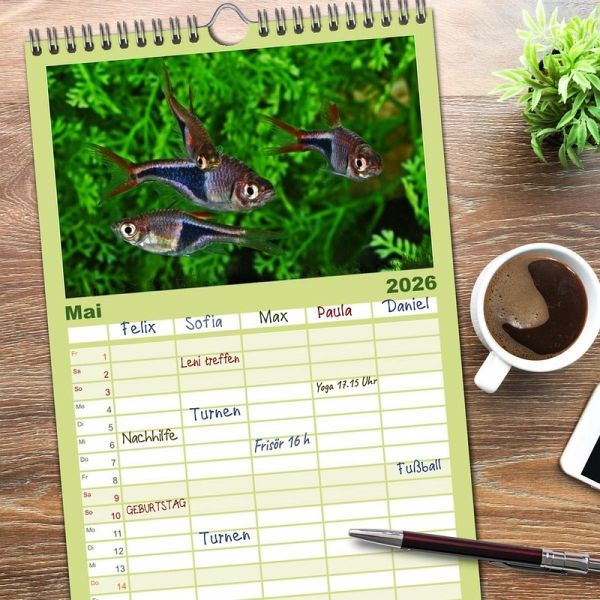 PRAKTISCH - übersichtlicher Familienkalender mit 5 Spalten für bis zu 5 Personen für mehr Struktur im Alltag - so bleiben alle Termine im Blick!ÜBERSICHTLICH - mit farblich getrennten Wochen- und Feiertagen. Die einzelnen Felder bieten genügend Platz für Eintragungen. So macht Organisieren Spaß!FANTASTISCHE BILDER - Dieser Planer ist nicht nur eine nützliche Hilfe im Alltag, sondern schmückt gleichzeitig Ihr Zuhause. Ideal auch als Geschenk.FÜR ALLE STIFTE GEEIGNET - ganz egal, ob Sie lieber mit Kugelschreiber oder Bleistift schreiben.NACHHALTIG - deutliche Abfallreduzierung durch bedarfsgerechte Einzelstückfertigung, umweltfreundliches FSC-zertifiziertes Papier, Produktion in Deutschland, klimabewusste Logistik.Farbenprächtige Süßwasserfische von Autor(in): Rudolf Pohlmann