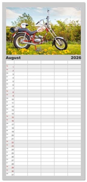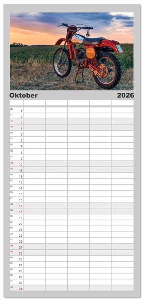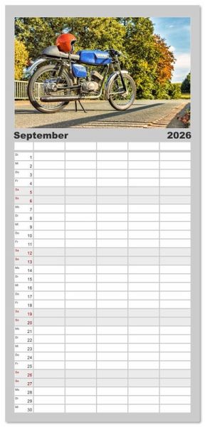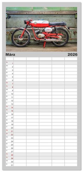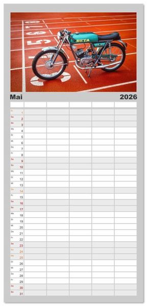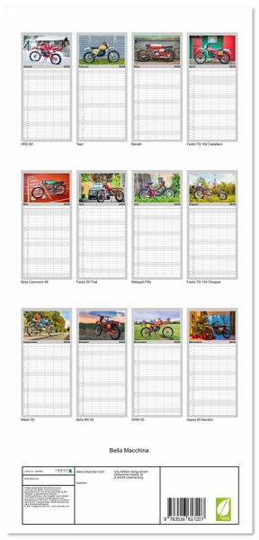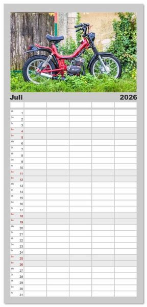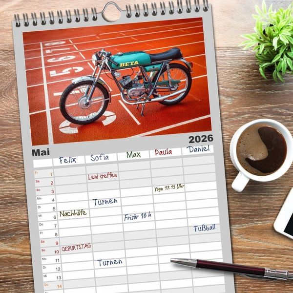 PRAKTISCH - übersichtlicher Familienkalender mit 5 Spalten für bis zu 5 Personen für mehr Struktur im Alltag - so bleiben alle Termine im Blick!ÜBERSICHTLICH - mit farblich getrennten Wochen- und Feiertagen. Die einzelnen Felder bieten genügend Platz für Eintragungen. So macht Organisieren Spaß!FANTASTISCHE BILDER - Dieser Planer ist nicht nur eine nützliche Hilfe im Alltag, sondern schmückt gleichzeitig Ihr Zuhause. Ideal auch als Geschenk.FÜR ALLE STIFTE GEEIGNET - ganz egal, ob Sie lieber mit Kugelschreiber oder Bleistift schreiben.NACHHALTIG - deutliche Abfallreduzierung durch bedarfsgerechte Einzelstückfertigung, umweltfreundliches FSC-zertifiziertes Papier, Produktion in Deutschland, klimabewusste Logistik.Historische Mopeds zeigen die Kunst italienischer Lebensart von Autor(in): Frank Kremer