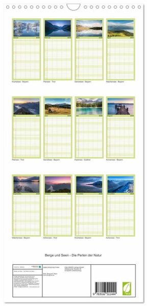 so bleiben alle Termine im Blick!ÜBERSICHTLICH - mit farblich getrennten Wochen- und Feiertagen. Die einzelnen Felder bieten genügend Platz für Eintragungen. So macht Organisieren Spaß!FANTASTISCHE BILDER - Dieser Planer ist nicht nur eine nützliche Hilfe im Alltag, sondern schmückt gleichzeitig Ihr Zuhause. Ideal auch als Geschenk.FÜR ALLE STIFTE GEEIGNET - ganz egal, ob Sie lieber mit Kugelschreiber oder Bleistift schreiben.NACHHALTIG - deutliche Abfallreduzierung durch bedarfsgerechte Einzelstückfertigung, umweltfreundliches FSC-zertifiziertes Papier, Produktion in Deutschland, klimabewusste Logistik.Traumhafte Bergseen und aussichtsreiche Panoramen von Autor(in): Bergpixel