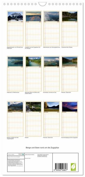 PRAKTISCH - übersichtlicher Familienkalender mit 5 Spalten für bis zu 5 Personen für mehr Struktur im Alltag - so bleiben alle Termine im Blick!ÜBERSICHTLICH - mit farblich getrennten Wochen- und Feiertagen. Die einzelnen Felder bieten genügend Platz für Eintragungen. So macht Organisieren Spaß!FANTASTISCHE BILDER - Dieser Planer ist nicht nur eine nützliche Hilfe im Alltag, sondern schmückt gleichzeitig Ihr Zuhause. Ideal auch als Geschenk.FÜR ALLE STIFTE GEEIGNET - ganz egal, ob Sie lieber mit Kugelschreiber oder Bleistift schreiben.NACHHALTIG - deutliche Abfallreduzierung durch bedarfsgerechte Einzelstückfertigung, umweltfreundliches FSC-zertifiziertes Papier, Produktion in Deutschland, klimabewusste Logistik.Beeindruckende Landschaften rund um die Zugspitze, Deutschlands höchsten Berggipfel. von Autor(in): Manuela Seiler
