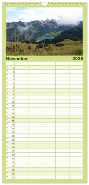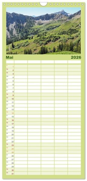 PRAKTISCH - übersichtlicher Familienkalender mit 5 Spalten für bis zu 5 Personen für mehr Struktur im Alltag - so bleiben alle Termine im Blick!ÜBERSICHTLICH - mit farblich getrennten Wochen- und Feiertagen. Die einzelnen Felder bieten genügend Platz für Eintragungen. So macht Organisieren Spaß!FANTASTISCHE BILDER - Dieser Planer ist nicht nur eine nützliche Hilfe im Alltag, sondern schmückt gleichzeitig Ihr Zuhause. Ideal auch als Geschenk.FÜR ALLE STIFTE GEEIGNET - ganz egal, ob Sie lieber mit Kugelschreiber oder Bleistift schreiben.NACHHALTIG - deutliche Abfallreduzierung durch bedarfsgerechte Einzelstückfertigung, umweltfreundliches FSC-zertifiziertes Papier, Produktion in Deutschland, klimabewusste Logistik.Traumhafte Bergkulissen im Tannheimer Tal. von Autor(in): Ralf Ruppert
