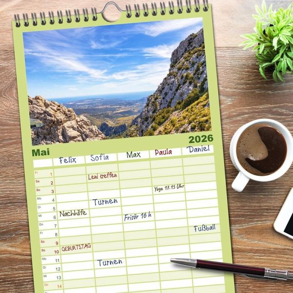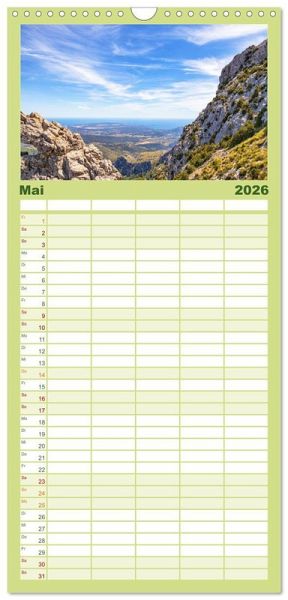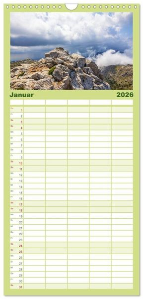 PRAKTISCH - übersichtlicher Familienkalender mit 5 Spalten für bis zu 5 Personen für mehr Struktur im Alltag - so bleiben alle Termine im Blick!ÜBERSICHTLICH - mit farblich getrennten Wochen- und Feiertagen. Die einzelnen Felder bieten genügend Platz für Eintragungen. So macht Organisieren Spaß!FANTASTISCHE BILDER - Dieser Planer ist nicht nur eine nützliche Hilfe im Alltag, sondern schmückt gleichzeitig Ihr Zuhause. Ideal auch als Geschenk.FÜR ALLE STIFTE GEEIGNET - ganz egal, ob Sie lieber mit Kugelschreiber oder Bleistift schreiben.NACHHALTIG - deutliche Abfallreduzierung durch bedarfsgerechte Einzelstückfertigung, umweltfreundliches FSC-zertifiziertes Papier, Produktion in Deutschland, klimabewusste Logistik.Jahresbegleiter für Bergwanderungen auf Mallorca von Autor(in): Videografic
