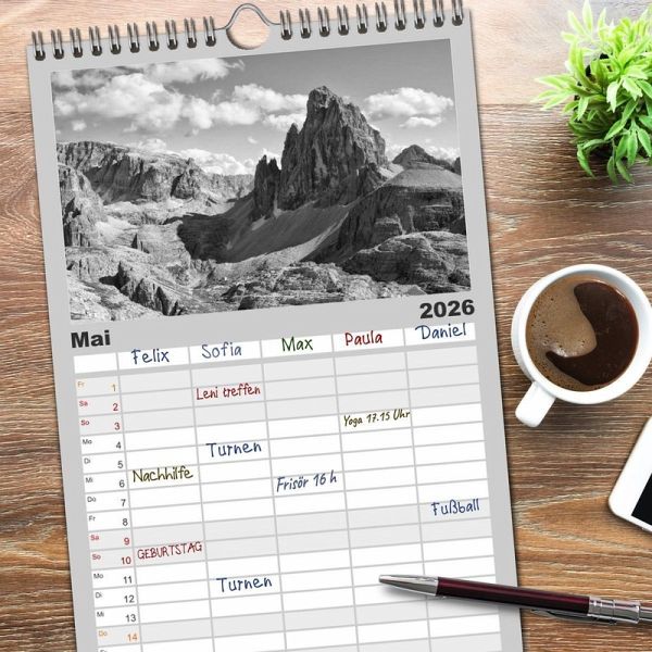 ersichtlicher Familienkalender mit 5 Spalten für bis zu 5 Personen für mehr Struktur im Alltag - so bleiben alle Termine im Blick!ÜBERSICHTLICH - mit farblich getrennten Wochen- und Feiertagen. Die einzelnen Felder bieten genügend Platz für Eintragungen. So macht Organisieren Spaß!FANTASTISCHE BILDER - Dieser Planer ist nicht nur eine nützliche Hilfe im Alltag, sondern schmückt gleichzeitig Ihr Zuhause. Ideal auch als Geschenk.FÜR ALLE STIFTE GEEIGNET - ganz egal, ob Sie lieber mit Kugelschreiber oder Bleistift schreiben.NACHHALTIG - deutliche Abfallreduzierung durch bedarfsgerechte Einzelstückfertigung, umweltfreundliches FSC-zertifiziertes Papier, Produktion in Deutschland, klimabewusste Logistik.Lichtstimmungen in Schwarz/Weiß von Autor(in): Michael Kehl