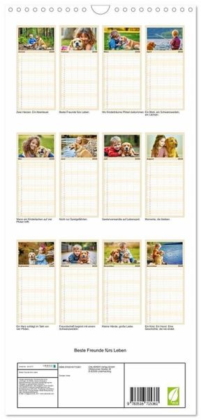 PRAKTISCH - übersichtlicher Familienkalender mit 5 Spalten für bis zu 5 Personen für mehr Struktur im Alltag - so bleiben alle Termine im Blick!ÜBERSICHTLICH - mit farblich getrennten Wochen- und Feiertagen. Die einzelnen Felder bieten genügend Platz für Eintragungen. So macht Organisieren Spaß!FANTASTISCHE BILDER - Dieser Planer ist nicht nur eine nützliche Hilfe im Alltag, sondern schmückt gleichzeitig Ihr Zuhause. Ideal auch als Geschenk.FÜR ALLE STIFTEGEEIGNET - ganz egal, ob Sie lieber mit Kugelschreiber oder Bleistift schreiben.NACHHALTIG - deutliche Abfallreduzierung durch bedarfsgerechte Einzelstückfertigung, umweltfreundliches FSC-zertifiziertes Papier, Produktion in Deutschland, klimabewusste Logistik.Große Abenteuer beginnen mit kleinen Pfoten. von Autor(in): Torsten Irmer