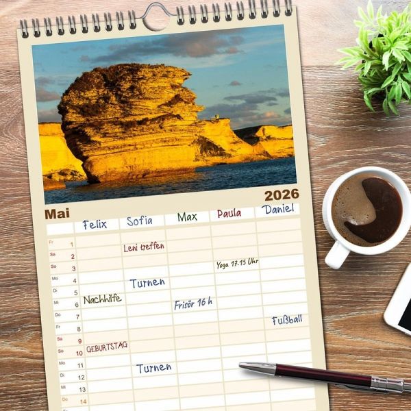 licher Familienkalender mit 5 Spalten für bis zu 5 Personen für mehr Struktur im Alltag - so bleiben alle Termine im Blick!ÜBERSICHTLICH - mit farblich getrennten Wochen- und Feiertagen. Die einzelnen Felder bieten genügend Platz für Eintragungen. So macht Organisieren Spaß!FANTASTISCHE BILDER - Dieser Planer ist nicht nur eine nützliche Hilfe im Alltag, sondern schmückt gleichzeitig Ihr Zuhause. Ideal auch als Geschenk.FÜR ALLE STIFTE GEEIGNET - ganz egal, ob Sie lieber mit Kugelschreiber oder Bleistift schreiben.NACHHALTIG - deutliche Abfallreduzierung durch bedarfsgerechte Einzelstückfertigung, umweltfreundliches FSC-zertifiziertes Papier, Produktion in Deutschland, klimabewusste Logistik.Malerisches Bonifacio auf Korsika - 4 Jahreszeiten von Autor(in): Gospodarek Mikolaj