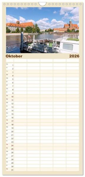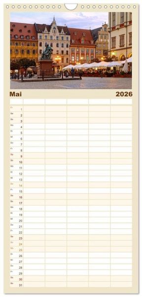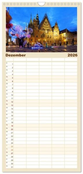 PRAKTISCH - übersichtlicher Familienkalender mit 5 Spalten für bis zu 5 Personen für mehr Struktur im Alltag - sobleiben alle Termine im Blick!ÜBERSICHTLICH - mit farblich getrennten Wochen- und Feiertagen. Die einzelnen Felder bieten genügend Platz für Eintragungen. So macht Organisieren Spaß!FANTASTISCHE BILDER - Dieser Planer ist nicht nur eine nützliche Hilfe im Alltag, sondern schmückt gleichzeitig Ihr Zuhause. Ideal auch als Geschenk.FÜR ALLE STIFTE GEEIGNET - ganz egal, ob Sie lieber mit Kugelschreiber oder Bleistift schreiben.NACHHALTIG - deutliche Abfallreduzierung durch bedarfsgerechte Einzelstückfertigung, umweltfreundliches FSC-zertifiziertes Papier, Produktion in Deutschland, klimabewusste Logistik.Die ausdrucksstarken Fotografien von Hanna Wagner fangen die besondere Atmosphäre Breslaus ein und machen architektonische Meisterwerke und historische Orte in einzigartigem Licht erlebbar. von Autor(in): Hanna Wagner