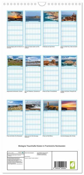 PRAKTISCH - übersichtlicher Familienkalender mit 5 Spalten für bis zu 5 Personen für mehr Struktur im Alltag - so bleiben alle Termine im Blick!ÜBERSICHTLICH - mit farblich getrennten Wochen- und Feiertagen. Die einzelnen Felder bieten genügend Platz für Eintragungen. So macht Organisieren Spaß!FANTASTISCHE BILDER - Dieser Planer ist nicht nur eine nützliche Hilfe im Alltag, sondern schmückt gleichzeitig Ihr Zuhause. Ideal auch als Geschenk.FÜR ALLE STIFTE GEEIGNET - ganz egal, ob Sie lieber mit Kugelschreiber oder Bleistift schreiben.NACHHALTIG - deutliche Abfallreduzierung durch bedarfsgerechte Einzelstückfertigung, umweltfreundliches FSC-zertifiziertes Papier, Produktion in Deutschland, klimabewusste Logistik.Eine Reise zu den malerischen Küstenlandschaften der bretonischen Halbinsel von Autor(in): Etienne Benoît