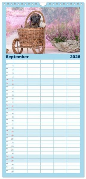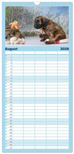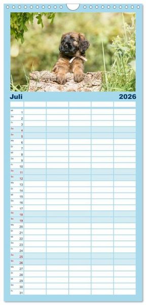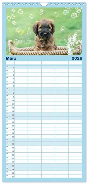 PRAKTISCH - übersichtlicher Familienkalender mit 5 Spalten für bis zu 5 Personen für mehr Struktur im Alltag - so bleiben alle Termine im Blick!ÜBERSICHTLICH - mit farblich getrennten Wochen- und Feiertagen. Die einzelnen Felder bieten genügend Platz für Eintragungen. So macht Organisieren Spaß!FANTASTISCHE BILDER - Dieser Planer ist nicht nur eine nützliche Hilfe im Alltag, sondern schmückt gleichzeitig Ihr Zuhause. Ideal auch als Geschenk.FÜR ALLE STIFTE GEEIGNET - ganz egal, ob Sie lieber mit Kugelschreiber oder Bleistift schreiben.NACHHALTIG - deutliche Abfallreduzierung durch bedarfsgerechte Einzelstückfertigung, umweltfreundliches FSC-zertifiziertes Papier, Produktion in Deutschland, klimabewusste Logistik.Zauberhafte Briardwelpen entdecken spielerisch die Welt. von Autor(in): Sonja Teßen