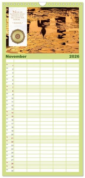 - Dieser Planer ist nicht nur eine nützliche Hilfe im Alltag, sondern schmückt gleichzeitig Ihr Zuhause. Ideal auch als Geschenk.FÜR ALLE STIFTE GEEIGNET - ganz egal, ob Sie lieber mit Kugelschreiber oder Bleistift schreiben.NACHHALTIG - deutliche Abfallreduzierung durch bedarfsgerechte Einzelstückfertigung, umweltfreundliches FSC-zertifiziertes Papier, Produktion in Deutschland, klimabewusste Logistik.Weisheiten aus Asien mit meditativen Fotografien von Autor(in): Globe VISUAL