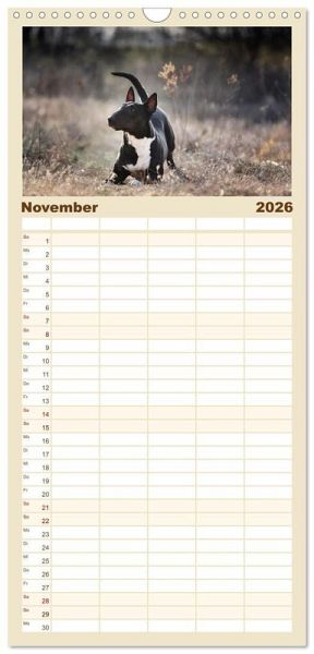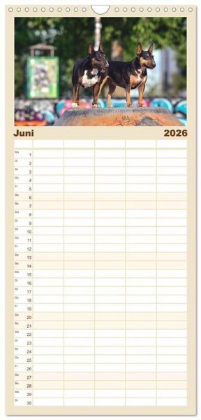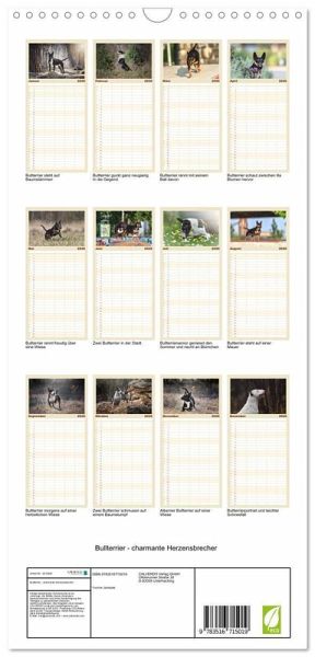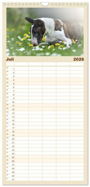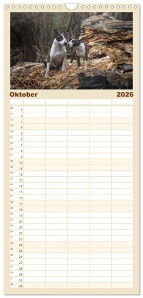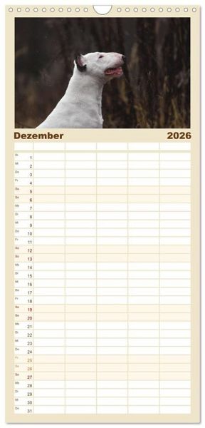 PRAKTISCH - übersichtlicher Familienkalender mit 5 Spalten für bis zu 5 Personen für mehr Struktur im Alltag - so bleiben alle Termine im Blick!ÜBERSICHTLICH - mit farblich getrennten Wochen- und Feiertagen. Die einzelnen Felder bieten genügend Platz für Eintragungen. So macht Organisieren Spaß!FANTASTISCHE BILDER - Dieser Planer ist nicht nur eine nützliche Hilfe im Alltag, sondern schmückt gleichzeitig Ihr Zuhause. Ideal auch als Geschenk.FÜR ALLE STIFTE GEEIGNET - ganz egal, ob Sie lieber mit Kugelschreiber oder Bleistift schreiben.NACHHALTIG - deutliche Abfallreduzierung durch bedarfsgerechte Einzelstückfertigung, umweltfreundliches FSC-zertifiziertes Papier, Produktion inDeutschland, klimabewusste Logistik.Entdecken Sie den Charakter und Charme des Bullterriers von Autor(in): Yvonne Janetzek