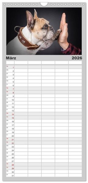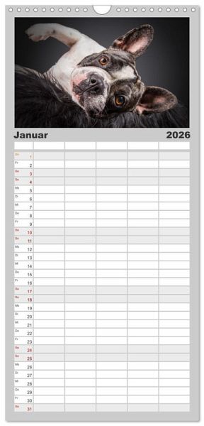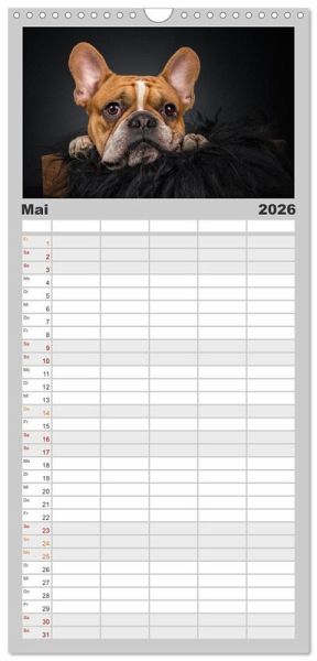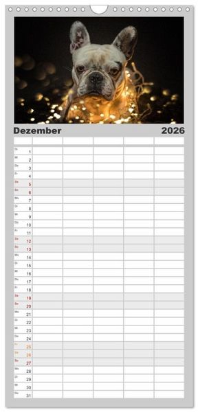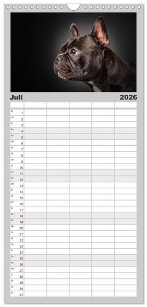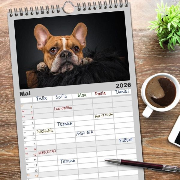 PRAKTISCH - übersichtlicher Familienkalender mit 5 Spalten für bis zu 5 Personen für mehr Struktur im Alltag - so bleiben alle Termine im Blick!ÜBERSICHTLICH - mit farblich getrennten Wochen- und Feiertagen. Die einzelnen Felder bieten genügend Platz für Eintragungen. So macht Organisieren Spaß!FANTASTISCHE BILDER - Dieser Planer ist nicht nur eine nützliche Hilfe im Alltag, sondern schmückt gleichzeitig Ihr Zuhause. Ideal auch als Geschenk.FÜR ALLE STIFTE GEEIGNET - ganz egal, ob Sie lieber mit Kugelschreiber oder Bleistift schreiben.NACHHALTIG - deutliche Abfallreduzierung durch bedarfsgerechte Einzelstückfertigung, umweltfreundliches FSC-zertifiziertes Papier, Produktion in Deutschland, klimabewusste Logistik.13 tolle Aufnahmen liebenswerter Französischer Bulldoggen machen diesen Kalender zum idealen Wandschmuck für alle Bully- und Hundeliebhaber. von Autor(in): Silke Gareis