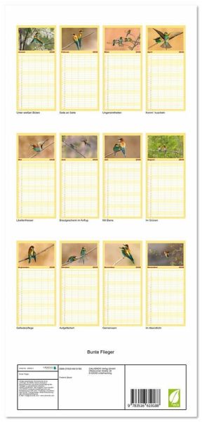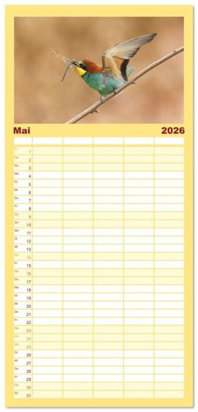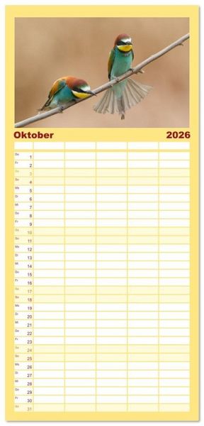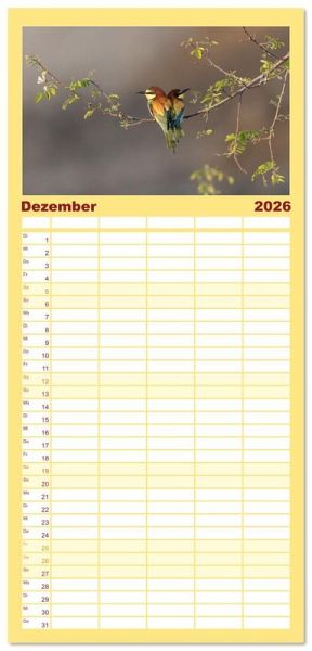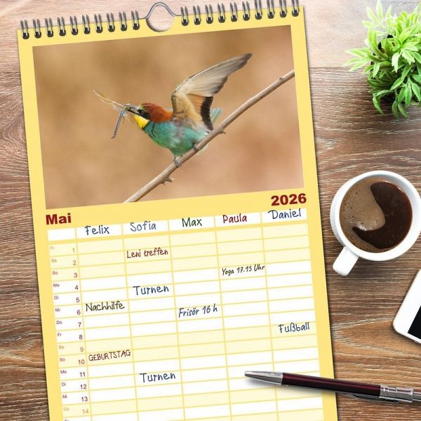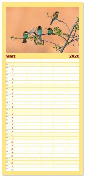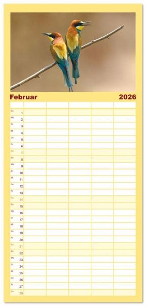e Termine im Blick!ÜBERSICHTLICH - mit farblich getrennten Wochen- und Feiertagen. Die einzelnen Felder bieten genügend Platz für Eintragungen. So macht Organisieren Spaß!FANTASTISCHE BILDER - Dieser Planer ist nicht nur eine nützliche Hilfe im Alltag, sondern schmückt gleichzeitig Ihr Zuhause. Ideal auch als Geschenk.FÜR ALLE STIFTE GEEIGNET - ganz egal, ob Sie lieber mit Kugelschreiber oder Bleistift schreiben.NACHHALTIG - deutliche Abfallreduzierung durch bedarfsgerechte Einzelstückfertigung, umweltfreundliches FSC-zertifiziertes Papier, Produktion in Deutschland, klimabewusste Logistik.Farbenprächtige Vögel in unterschiedlichen Szenen von Autor(in): Frederic Bauer