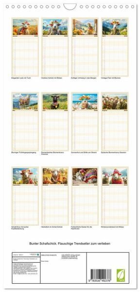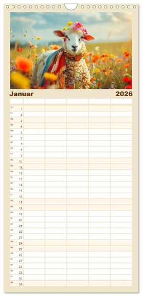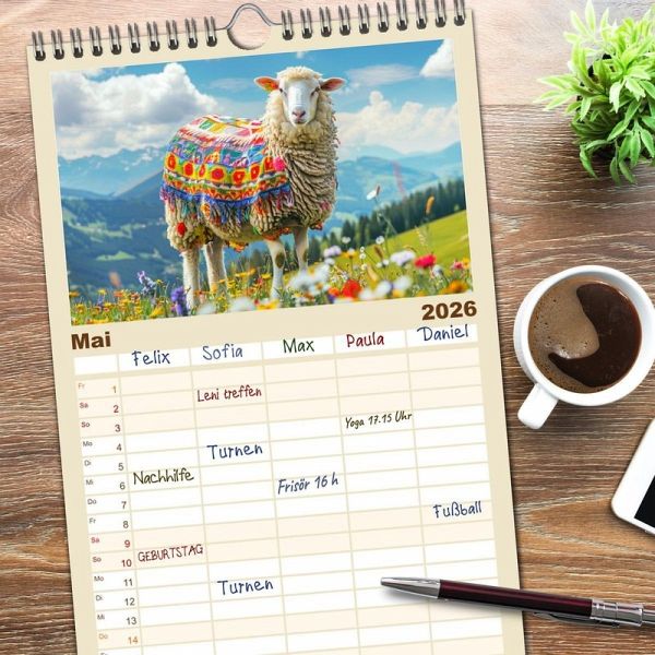 PRAKTISCH - übersichtlicher Familienkalender mit 5 Spalten für bis zu 5 Personen für mehr Struktur im Alltag - so bleiben alle Termine im Blick!ÜBERSICHTLICH - mit farblich getrennten Wochen- und Feiertagen. Die einzelnen Felder bieten genügend Platz für Eintragungen. So macht Organisieren Spaß!FANTASTISCHE BILDER - Dieser Planer ist nicht nur eine nützliche Hilfe im Alltag, sondern schmückt gleichzeitig Ihr Zuhause. Ideal auch als Geschenk.FÜR ALLE STIFTE GEEIGNET - ganz egal, ob Sie lieber mit Kugelschreiber oder Bleistift schreiben.NACHHALTIG - deutliche Abfallreduzierung durch bedarfsgerechte Einzelstückfertigung, umweltfreundliches FSC-zertifiziertes Papier, Produktion in Deutschland, klimabewusste Logistik.Die neuesten Designs in der zauberhaften Schafmode von Autor(in): Rose Hurley
