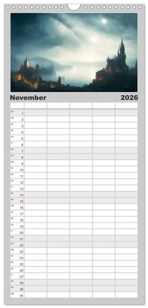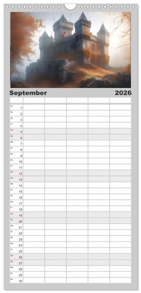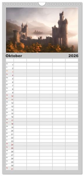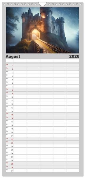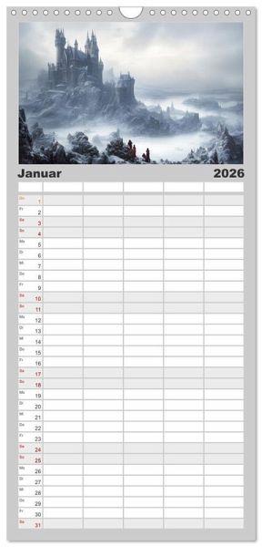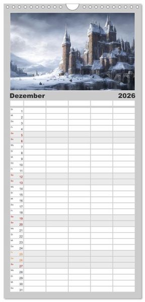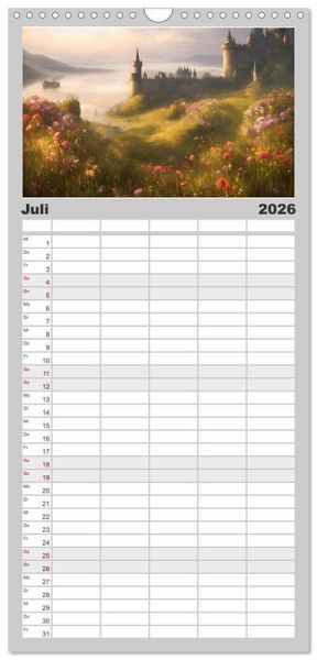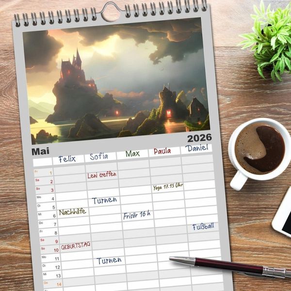PRAKTISCH - übersichtlicher Familienkalender mit 5 Spalten für bis zu 5 Personen für mehr Struktur im Alltag - so bleiben alle Termine im Blick!ÜBERSICHTLICH - mit farblich getrennten Wochen- und Feiertagen. Die einzelnen Felder bieten genügend Platz für Eintragungen. So macht Organisieren Spaß!FANTASTISCHE BILDER - Dieser Planer ist nicht nur eine nützliche Hilfe im Alltag, sondern schmückt gleichzeitig Ihr Zuhause. Ideal auch als Geschenk.FÜR ALLE STIFTE GEEIGNET - ganz egal, ob Sie lieber mit Kugelschreiber oder Bleistift schreiben.NACHHALTIG - deutliche Abfallreduzierung durch bedarfsgerechte Einzelstückfertigung, umweltfreundliches FSC-zertifiziertes Papier, Produktion in Deutschland, klimabewusste Logistik.Mittelalterliche Burgen in einer fesselnden KI-Phantasiewelt von Autor(in): Doris Krüger