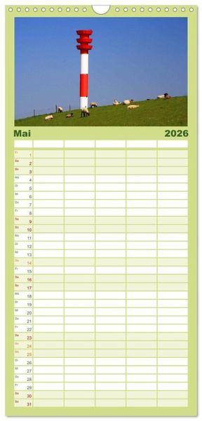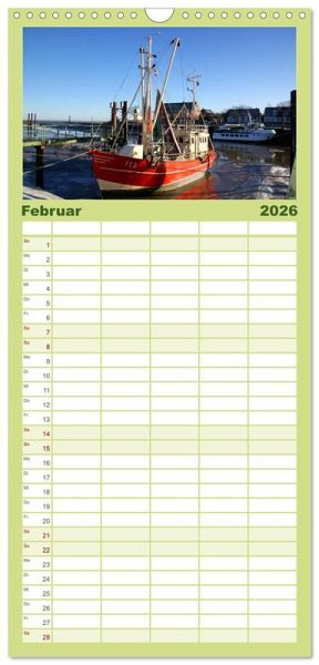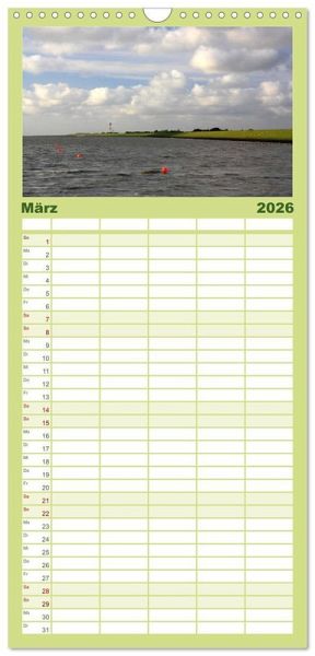 PRAKTISCH - übersichtlicher Familienkalender mit 5 Spalten für bis zu 5 Personen für mehr Struktur im Alltag - so bleiben alle Termine im Blick!ÜBERSICHTLICH - mit farblich getrennten Wochen- und Feiertagen. Die einzelnen Felder bieten genügend Platz für Eintragungen. So macht Organisieren Spaß!FANTASTISCHE BILDER - Dieser Planer ist nicht nur eine nützliche Hilfe im Alltag, sondern schmückt gleichzeitig Ihr Zuhause. Ideal auch als Geschenk.FÜR ALLE STIFTE GEEIGNET - ganz egal, ob Sie lieber mit Kugelschreiber oder Bleistift schreiben.NACHHALTIG - deutliche Abfallreduzierung durch bedarfsgerechte Einzelstückfertigung, umweltfreundliches FSC-zertifiziertes Papier, Produktion in Deutschland, klimabewusste Logistik.12 verschiedene Fotoimpressionen von der Halbinsel Butjadingen zwischen Jade und Weser an der Nordseeküste. von Autor(in): Steffani Lehmann