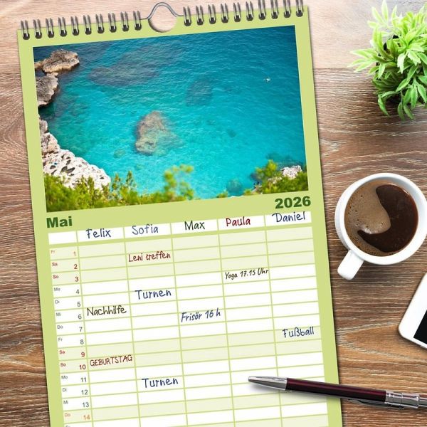 zu 5 Personen für mehr Struktur im Alltag - so bleiben alle Termine im Blick!ÜBERSICHTLICH - mit farblich getrennten Wochen- und Feiertagen. Die einzelnen Felder bieten genügend Platz für Eintragungen. So macht Organisieren Spaß!FANTASTISCHE BILDER - Dieser Planer ist nicht nur eine nützliche Hilfe im Alltag, sondern schmückt gleichzeitig Ihr Zuhause. Ideal auch als Geschenk.FÜR ALLE STIFTE GEEIGNET - ganz egal, ob Sie lieber mit Kugelschreiber oder Bleistift schreiben.NACHHALTIG - deutliche Abfallreduzierung durch bedarfsgerechte Einzelstückfertigung, umweltfreundliches FSC-zertifiziertes Papier, Produktion in Deutschland, klimabewusste Logistik.Atemberaubende Felsenlandschaft direkt am Mittelmeer. von Autor(in): Happy Monkey