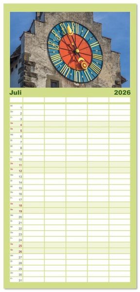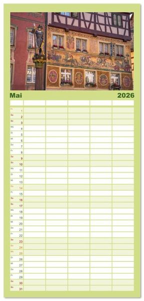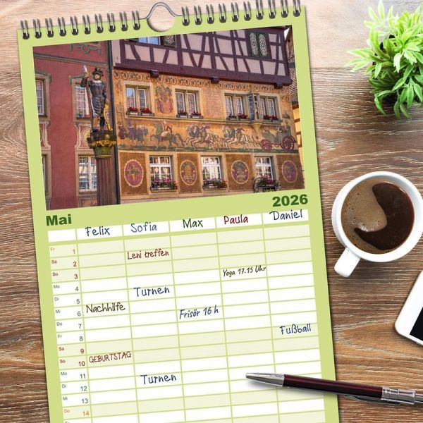 PRAKTISCH - übersichtlicher Familienkalender mit 5 Spalten für bis zu 5 Personen für mehr Struktur im Alltag - so bleiben alle Termine im Blick!ÜBERSICHTLICH - mit farblich getrennten Wochen- und Feiertagen. Die einzelnen Felder bieten genügend Platz für Eintragungen. So macht Organisieren Spaß!FANTASTISCHE BILDER - Dieser Planer ist nicht nur eine nützliche Hilfe im Alltag, sondern schmückt gleichzeitig Ihr Zuhause. Ideal auch als Geschenk.FÜR ALLE STIFTE GEEIGNET - ganz egal, ob Sie lieber mit Kugelschreiber oder Bleistift schreiben.NACHHALTIG - deutliche Abfallreduzierung durch bedarfsgerechte Einzelstückfertigung, umweltfreundliches FSC-zertifiziertes Papier, Produktion in Deutschland, klimabewusste Logistik.Idyllische Altstadt am Hochrhein von Autor(in): Giuseppe Di Domenico